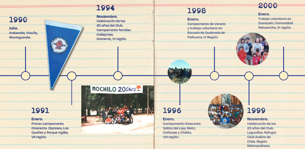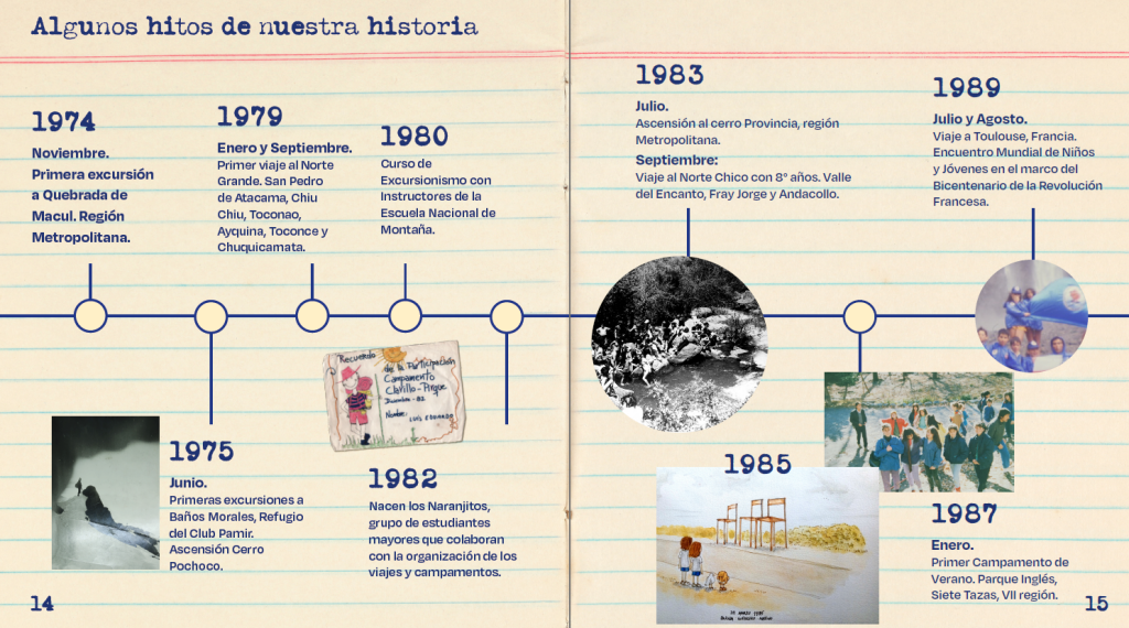 Octubre del 2022 marca el inicio del proyecto, el 2023 con el apoyo generoso de un grupo de ex alumnos comenzamos a recoger las reflexiones y opiniones a través de una consulta que se envió a la comunidad del Latino mediante redes sociales. Este proceso culmina el 30 de noviembre del 2024 con la presentación del libro, fecha en que se cumplieron 50 años desde el inicio del excursionismo.